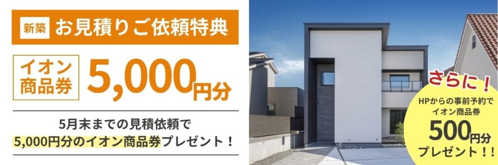 5月末までにお見積依頼をしていただきますと「イオン商品券5,000円分」プレゼント!